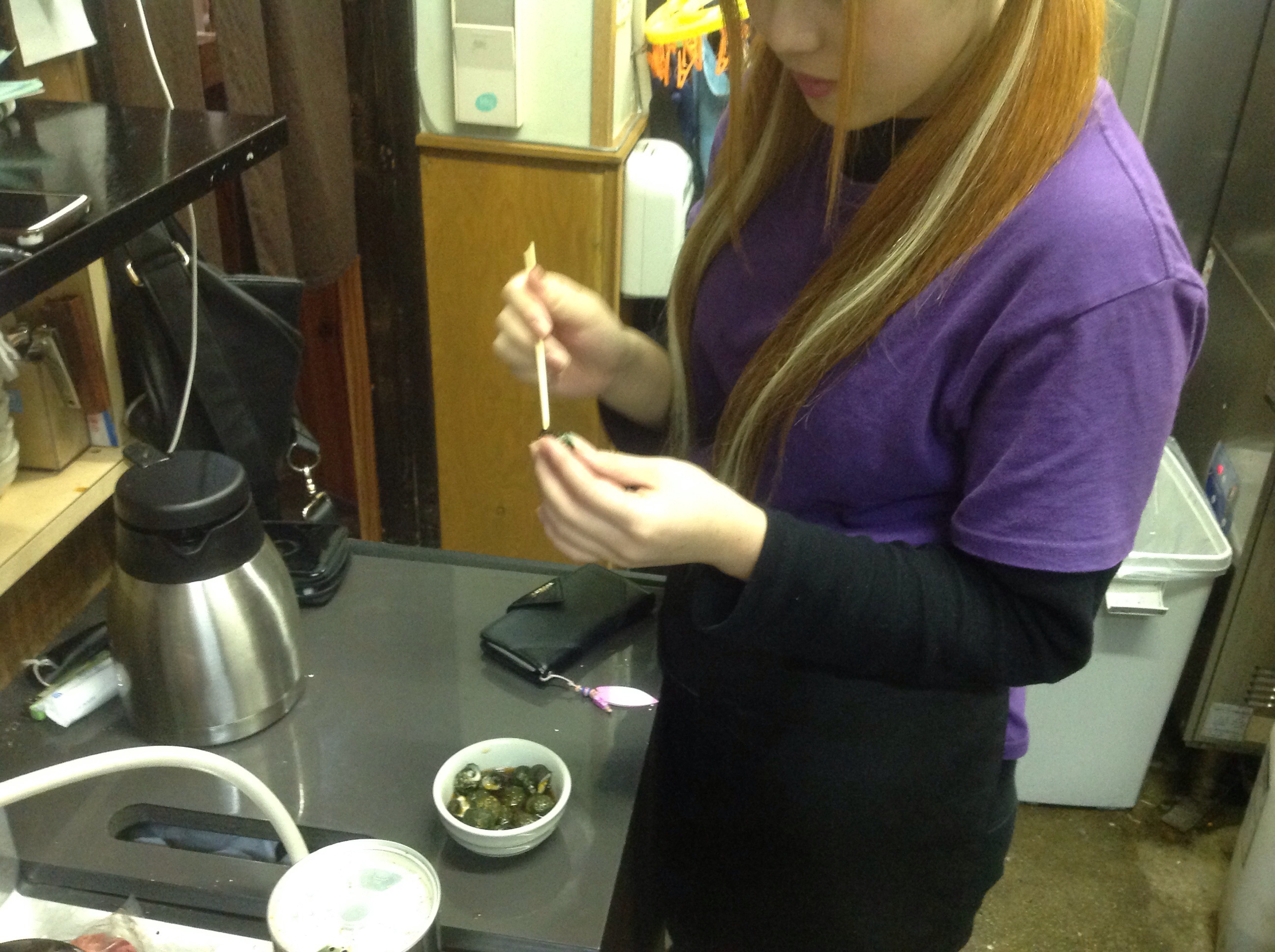 本日の付き出しは、嫁さんが昨夜1人で取りに行ったミナ貝です♪笑