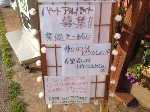皆様お疲れ様です( ´ ▽ ` )ノ楽畑でございます! 今日はまたまた求人のお願いでございます! 張り紙以外の事でも聞きたい事があれば 何でもお問い合わせ下さい(^ ^) 新メニューも絶好調でございます! 今日は日曜で砂ずり刺しはありませんが その他は取り揃えてお待ちしております( ´ ▽ ` )ノ 居酒屋楽畑(イザカヤワイワイ) 住所 〒856-0837 長崎県大村市西本町537-1STMビル1-A 電話番号 0957-52-7700 営業時間 18:00~05:00 定休日 木曜日 当店Facebookはこちら http://on.fb.me/1TLVOBq